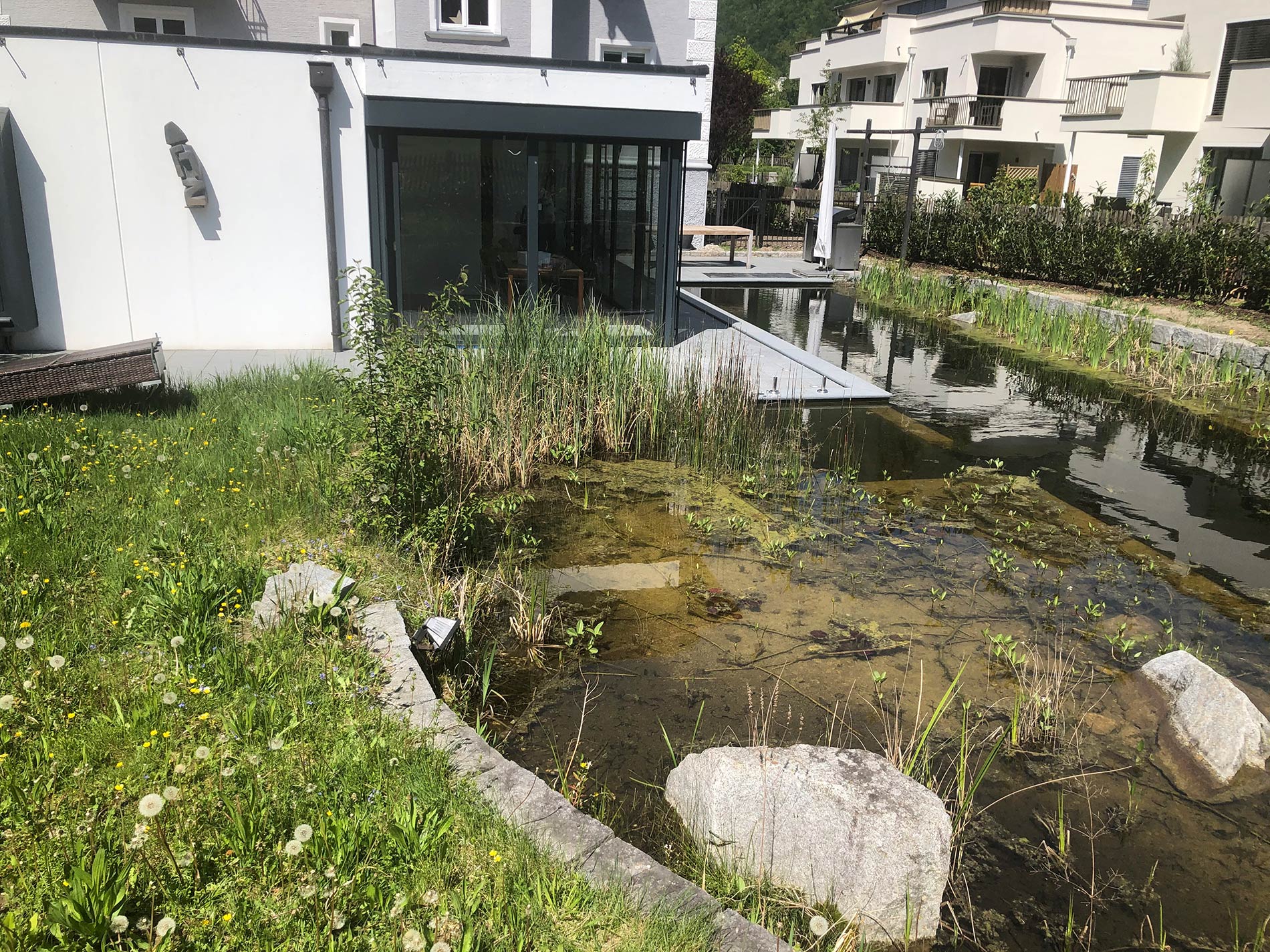 Langjährige Erfahrungen mit verschiedensten Schwimm-und Zierteichen in allen Größen und Bauarten sind die Basis für einen nachhaltigen Einsatz von Mikroorganismen zur Reinigung Ihres Teiches. Wir können auf eine Auswahl spezieller Mikroorganismen zurückgreifen, die deutlich zum Abbau von Biofilmen, Belägen, Algen usw. beitragen. Dies ist besonders für öffentliche Schwimmteiche oder Golfplatzteiche geeignet. Auch besonders schwierige Fälle können wir mit einer vorher analysierten und errechneten Dosis lösen! Eine umfassende Analyse der Ursachen für Ihre Teichprobleme wird in jedem Falle vorher durchgeführt.