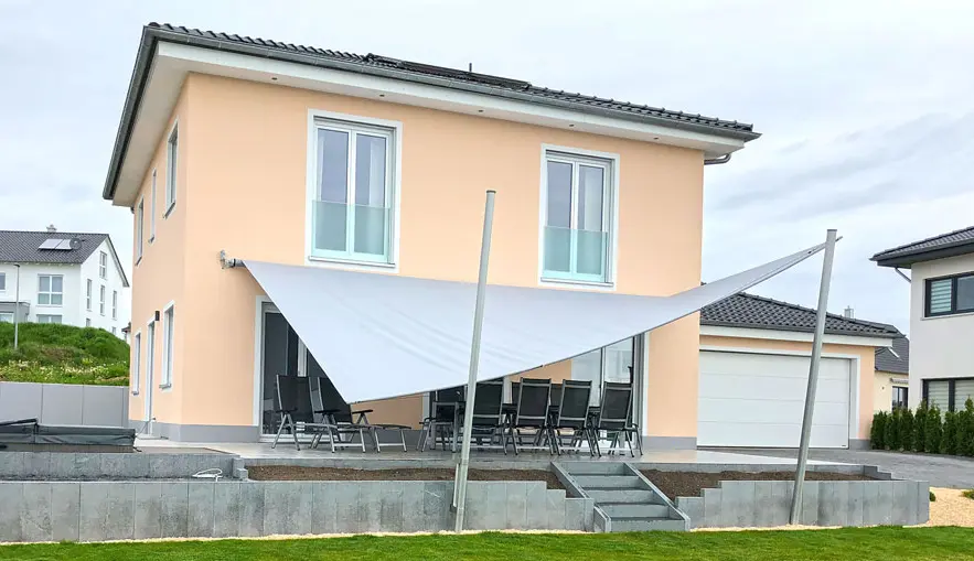 Unsere Sonnesegel sind auf Knopfdruck oder manuell bedienbar und können je nach Sonnenstand angepasst werden.