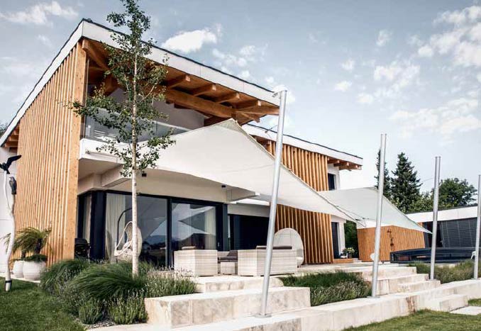 Dieses neuartige Segelkonzept für Sonnen- und Regenschutz eröffnet gänzlich neue gestalterische Dimensionen – ein architektonisches Highlight für die coolen Stunden des Sommers.