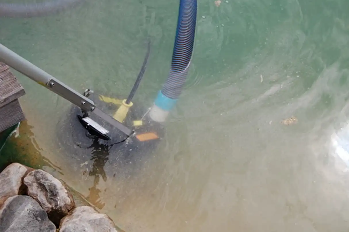 Modernste Technik ermöglicht es, verschmutztes Wasser direkt aus dem Teich oder Becken aufzunehmen. Während die Fräse Algen, Laub und Schlammreste löst, filtert das System automatisch alle Feststoffe heraus. Das gesäuberte Wasser wird unmittelbar wieder eingeleitet.
